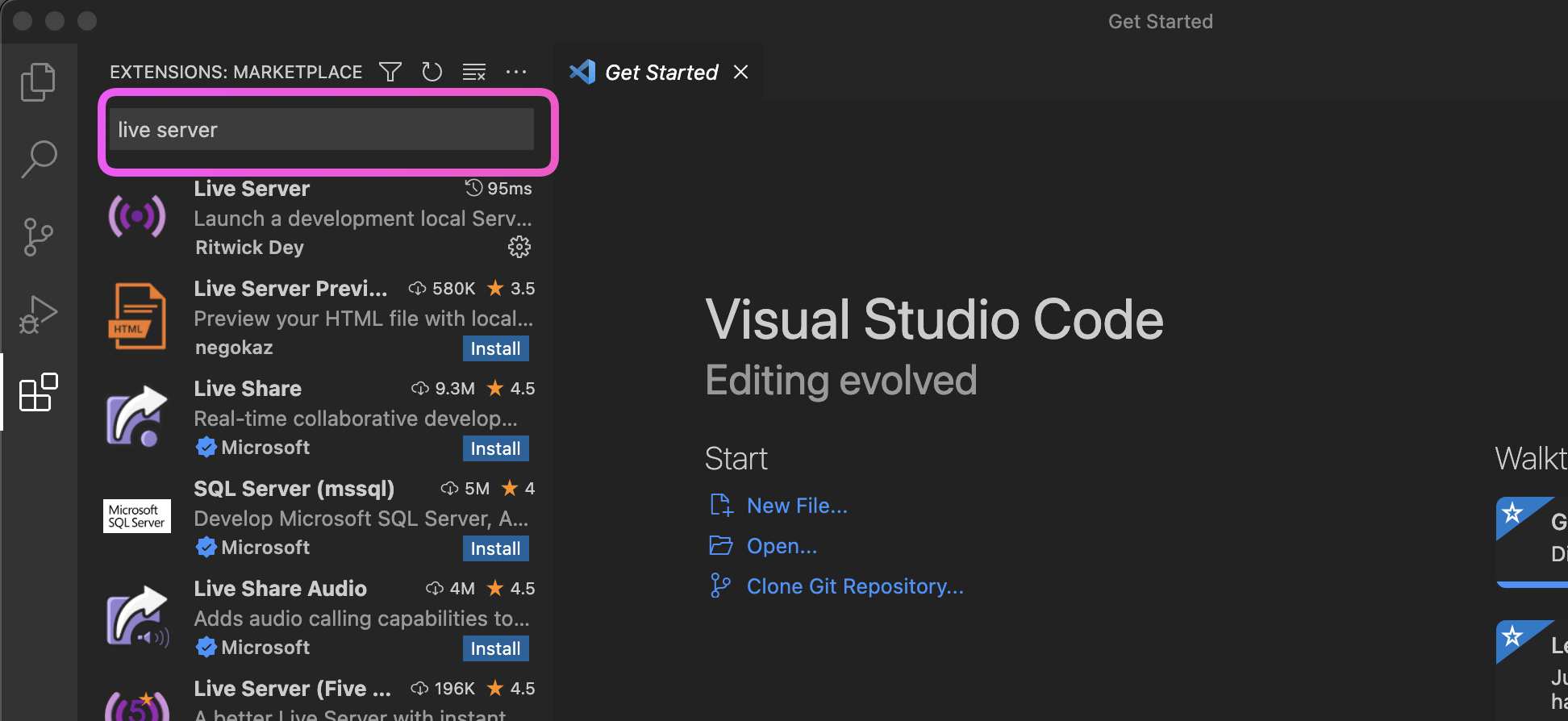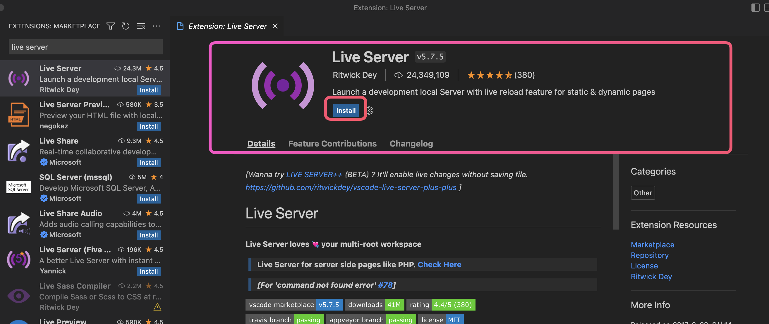 그리고 검색창에 "Live Server"라고 입력하시면, 몇개의 extension들이 보일겁니다.